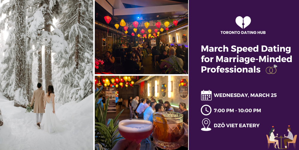 This is our popular monthly speed dating event intended for likeminded professionals with the intent to marry within 2-5 years. Toronto Dating Hub is always innovating and we're excited to be the first in Toronto in 2025 to host dedicated mixers exclusively for singles who are in the same life stage: ready for marriage and looking to settle down.